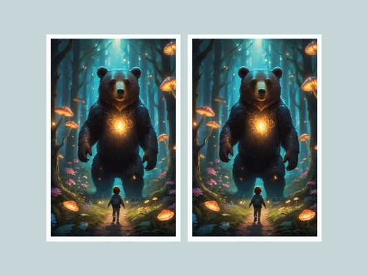 Glowing Bear Spirit & Child | Mystical Forest Digital Artwork | Instant Download Print. Downloadable Artwork. Wall Frame. Beautifully Made