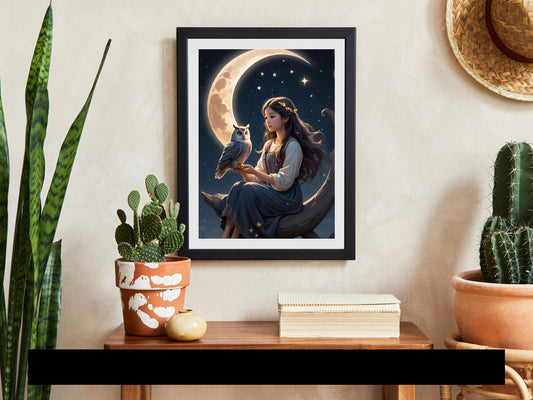 Glowing Owl Art; Digital Print, Wall Celestial Owl Print: Printable Wall Art. Stargazer Gift