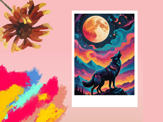 Howling Wolf: Majestic Moonlit Digital Art Print | Instant Download Wildlife Wall Decor | Nature-Inspired Artwork