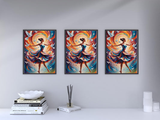Grace in Motion: Ballet Dancer with Swirling Doves | Elegant Digital Art Print | Instant Download Wall Decor